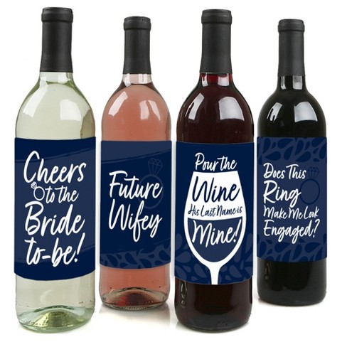 Big Dot of Happiness Navy Blue Elegantly Simple - Wedding or Bridal Shower Guest Party Favors Decorations - Wine Bottle Label Stickers - Set of 4